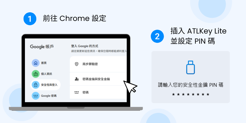- 在首次使用時,系統或網站會要求你設定一組 PIN 碼,用來保護這支金鑰