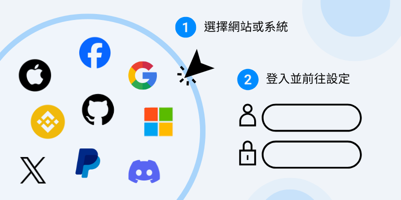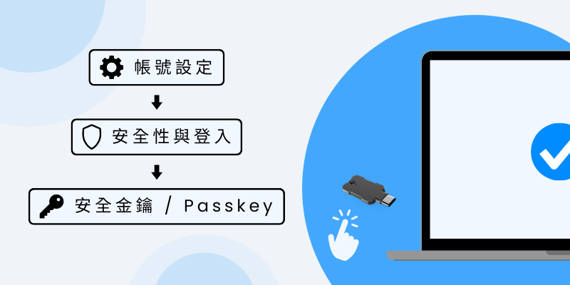 - 各網站設定略有不同,通常可在帳號安全性相關設定中找到「安全金鑰 / Passkey」