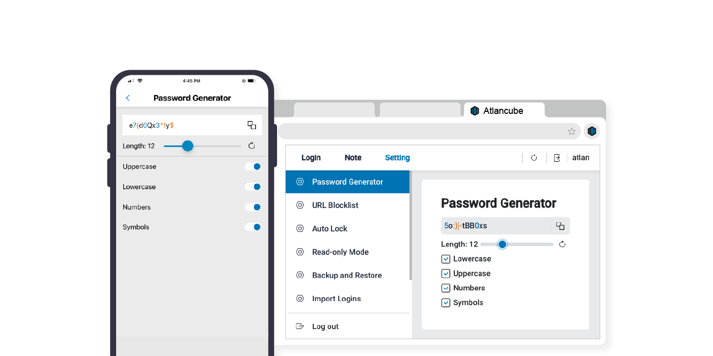 Struggling creating and remembering complex passwords? Consolidate your password strength with our built-in password generator. Say goodbye to using weak passwords such as your birthdate or your pet's name.