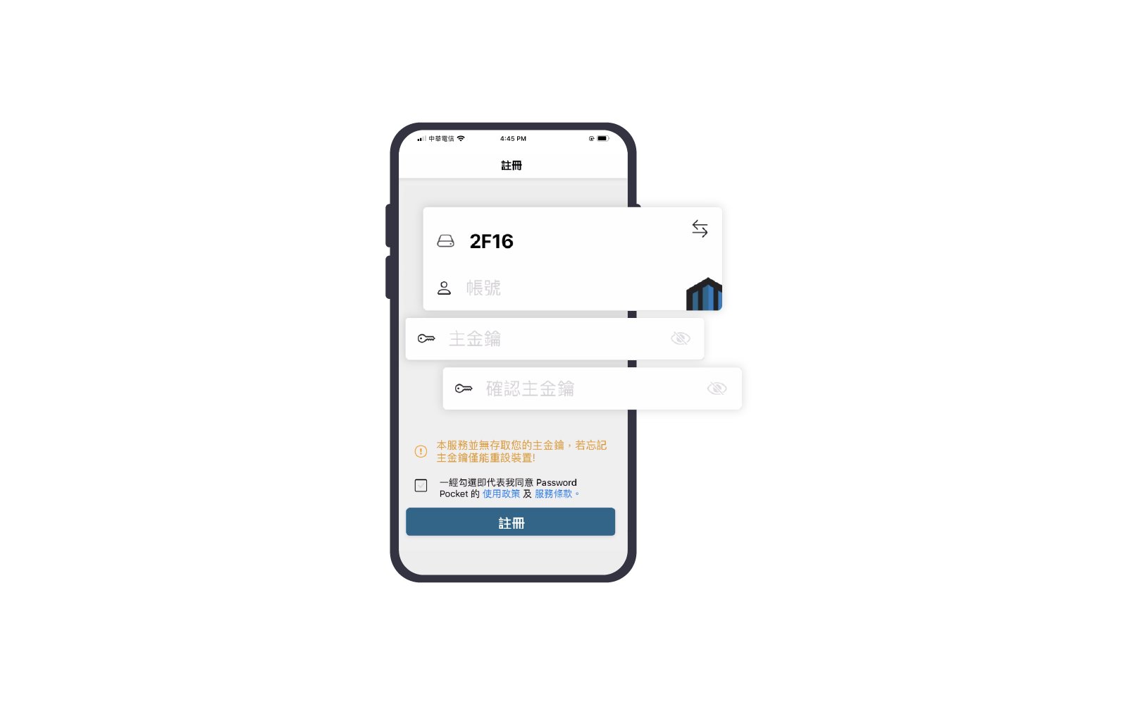 PasswordPocket 將多種加密技術與自行研發的加密演算法整合,確保資料在傳輸過程中與儲存擁有完整的保護。