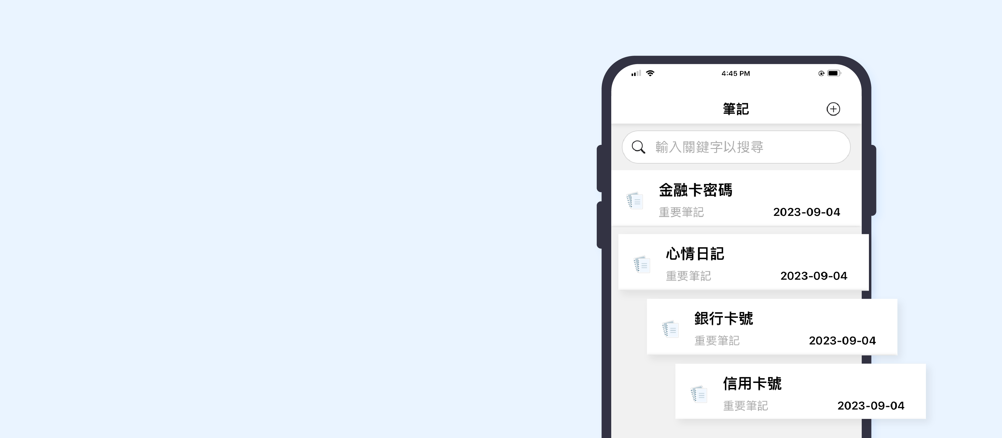 你可以儲存最多 1000 組帳密在 PasswordPocket 上,安心為為不同網站設定不同且高強度的帳密,輕鬆管理,不再擔心遺忘他們。
